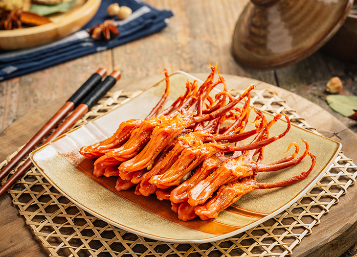 獨特工藝,蒸汽鹵制,醬鹵收汁,鎖住營養(yǎng)。28種植物香辛料,醬香鮮辣,締造全國特色風(fēng)味醬鴨。